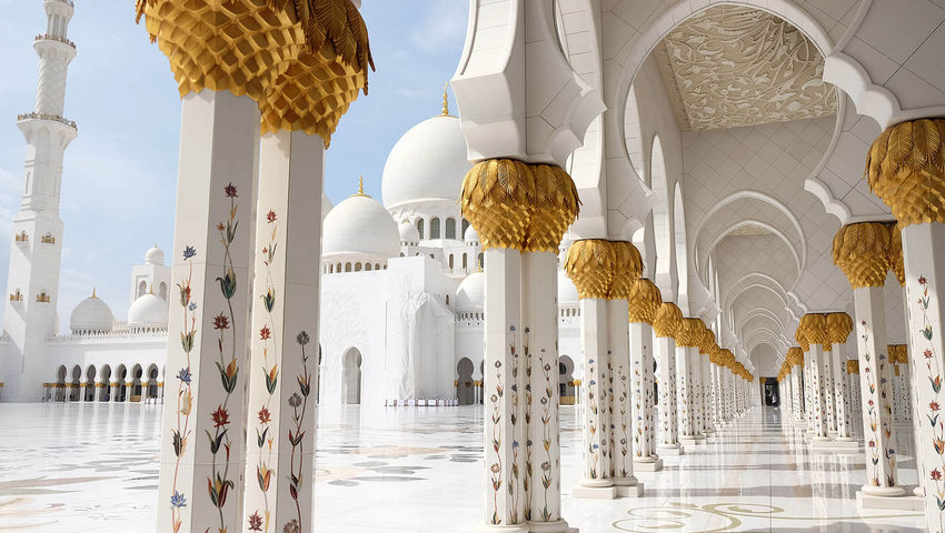 (Abu Dhabi Sheik Zayed Camii Gezisinde erkeklerin şort giymemesi, kadınların askılı bluz, kısa etek vb gibi kıyafet ile ziyarette bulunmaları kesinlikle mümkün değildir. Kadınların yanlarında hırka ve baş örtüsü bulundurması gerekmektedir.)