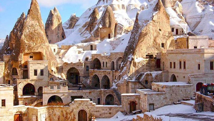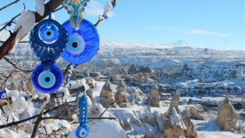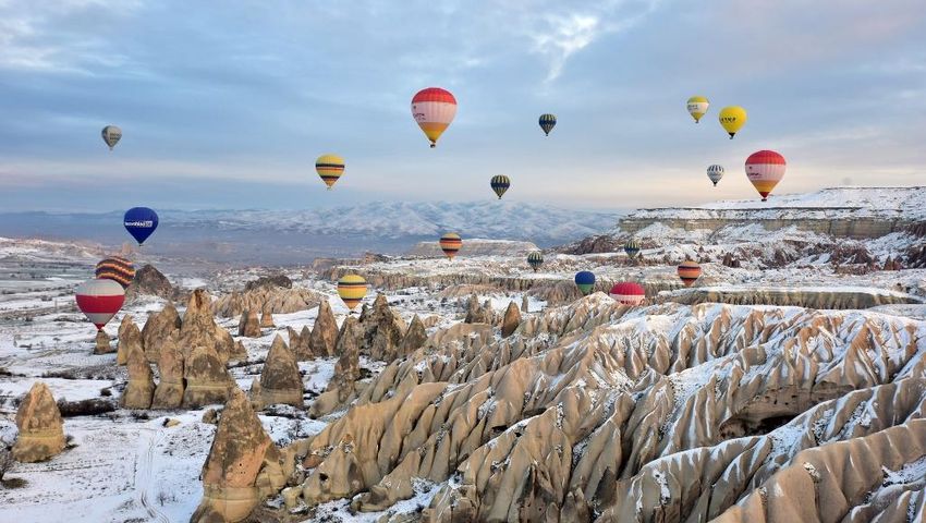 Beyazlarla kaplı eşsiz doğa manzaraları içinde Kapadokya ve
